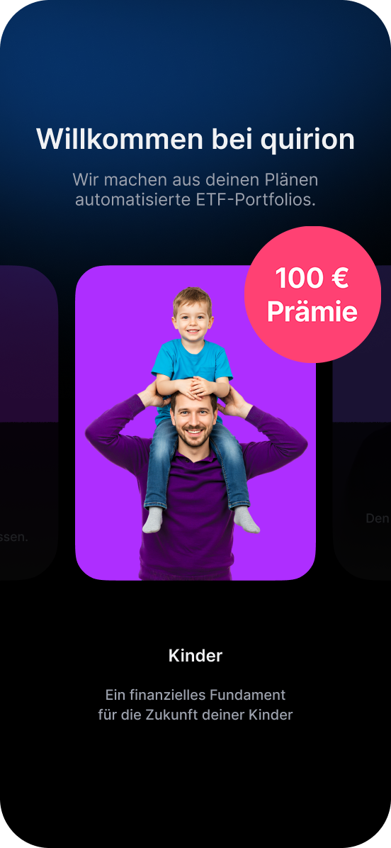 Der Kinder-Sparplan-Rechner von quirion basiert auf der Annahme einer 100 %-igen Aktien-Investitionen, mit der die Renditechancen des Kapitalmarktes am besten ausgeschöpft werden können, wenn die damit verbundenen – mitunter auch deutlich stärkeren – Kursschwankungen ausgehalten werden können. Mehr erfahren